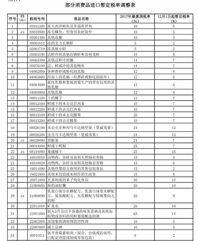 经国务院关税税则委员会审议通过,并报国务院批准,我国将对部分消费品进口关税进行调整。自2017年12月1日开始实施。